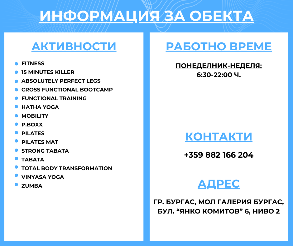 Фитнес в Бургас без аналог - Mall Galleria Burgas, ниво 2