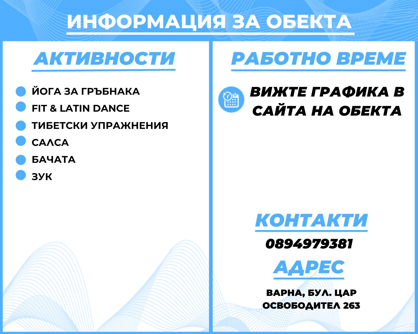 Ние от Kremena Dance Center се грижим всеки месец да имате нови възможности да надграждате себе си! Вече ще Ви посрещаме с големи усмивки и с много настроение на новата ни локация: бул. “Цар Освободител” 263, ет.2 (над магазин Зора, до Метро). Има и удобен безплатен паркинг