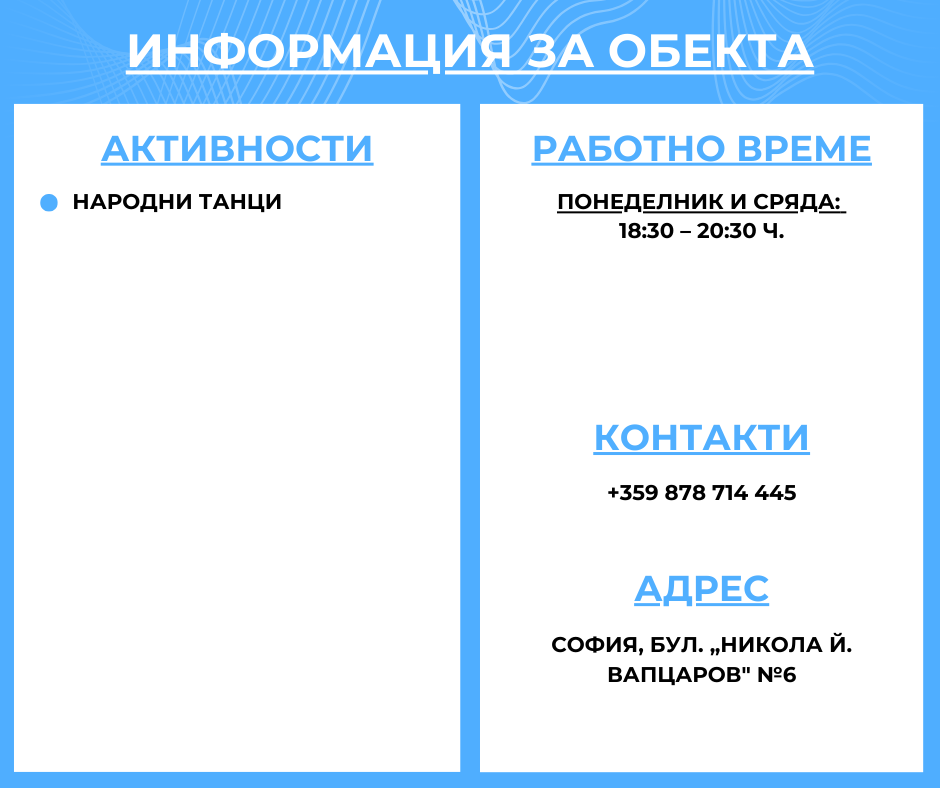 Ръководител и хореограф на Школа за народни танци “Наниз” е вечно усмихнатата и талантлива Надежда Рашкова.