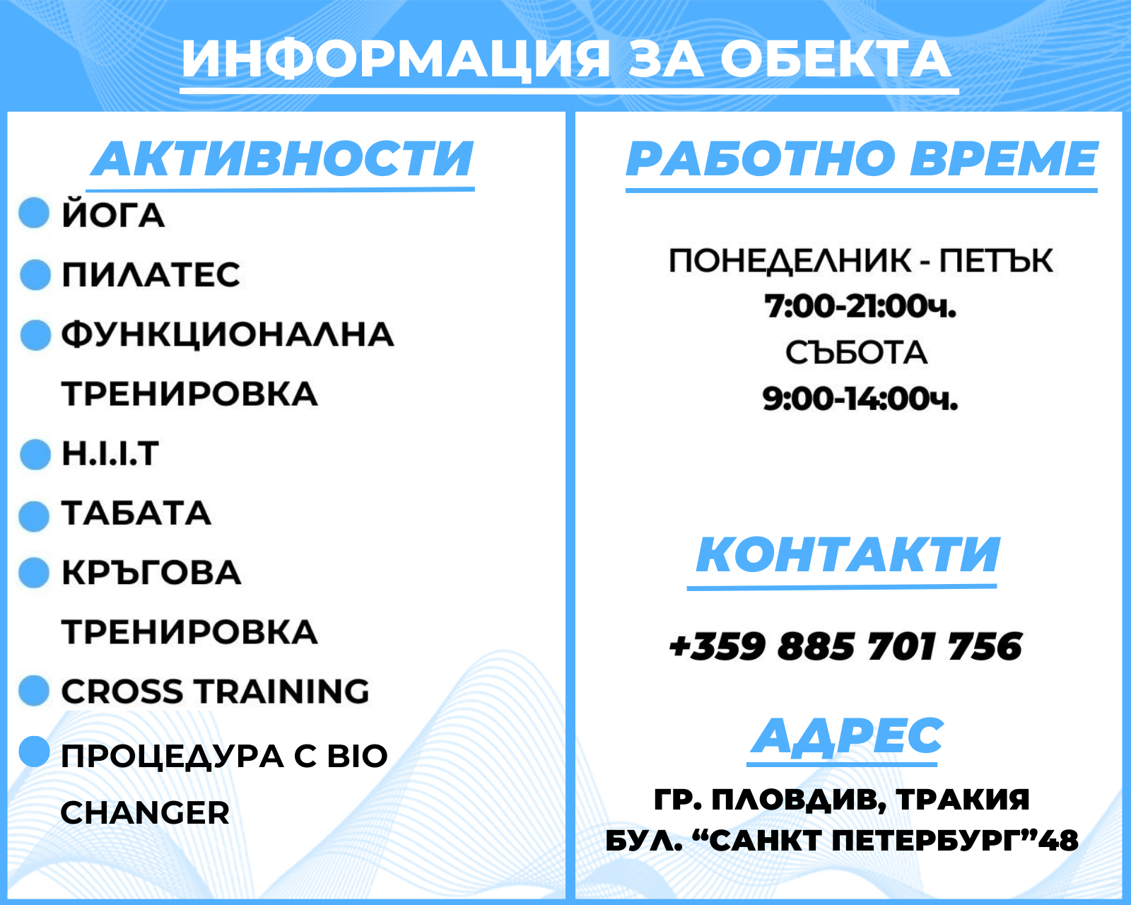Xfit не е просто спортна зала, а единственото по рода си място създадено за групови тренировки. Енергията и мотивациятa, която може да ти предаде група от хора с обща цел е водещия мотив за нас. Във времето, в което живеем, всички се стремим към емоции и преживявания – подарете си ги. Подарете ни ги!